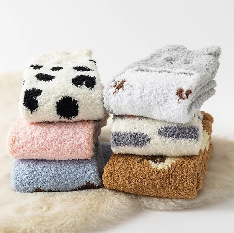 Piliin ang Tamang Kapal: Habang ang mga coral fleece na medyas ay karaniwang makapal, ang mas makapal ay hindi palaging mas mahusay. Ang sobrang makapal na medyas, kung hindi makahinga, ay maaaring maging sanhi ng pawis na paa. Inirerekomenda na pumili ng mga istilo na may kaunting elasticity at kaunting spandex, na nagbibigay ng init at snug fit.